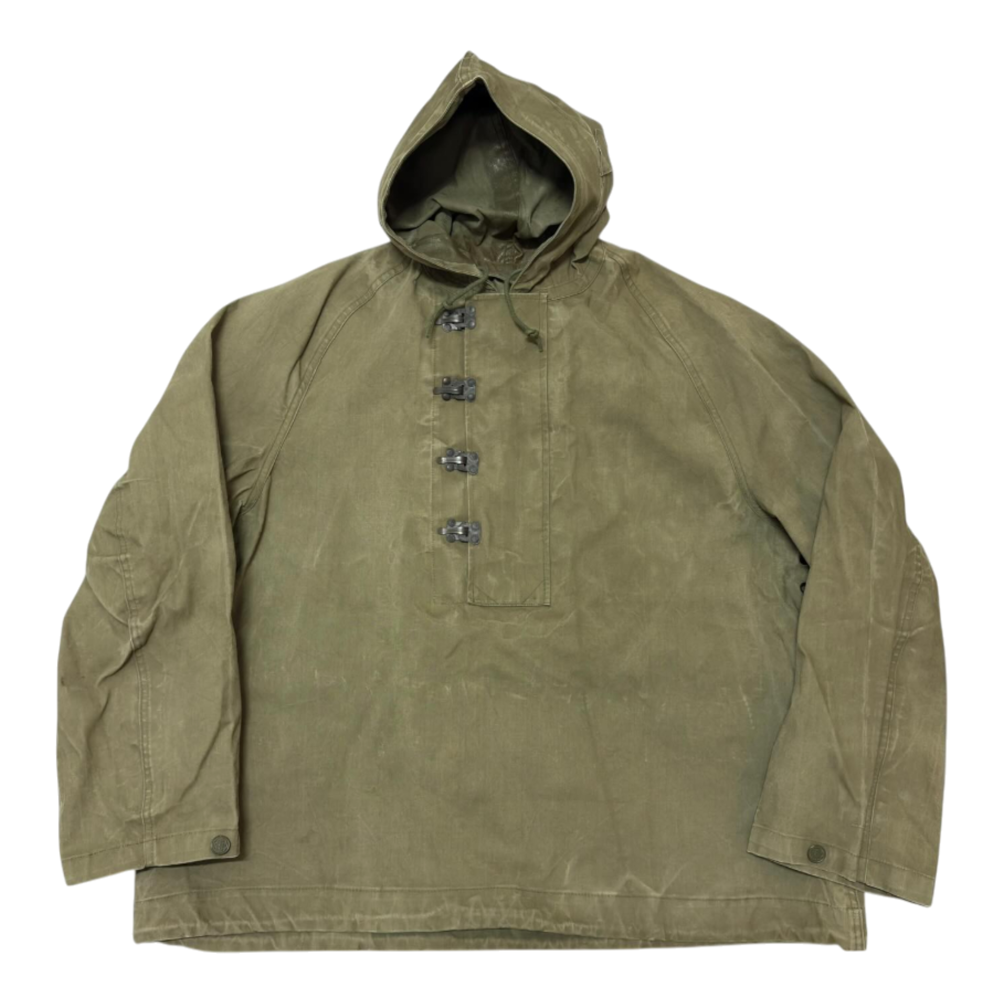 ラバーコーティングの厚手コットンを使用した防水性の高い仕様で、当時ならではの素材感と使用感がしっかりと残ったヴィンテージならではの雰囲気が魅力です。