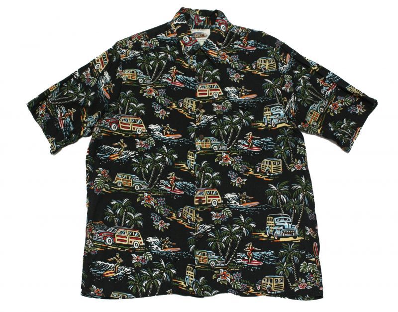 アロハシャツではお馴染みのレインスプーナー、ブラックベースに